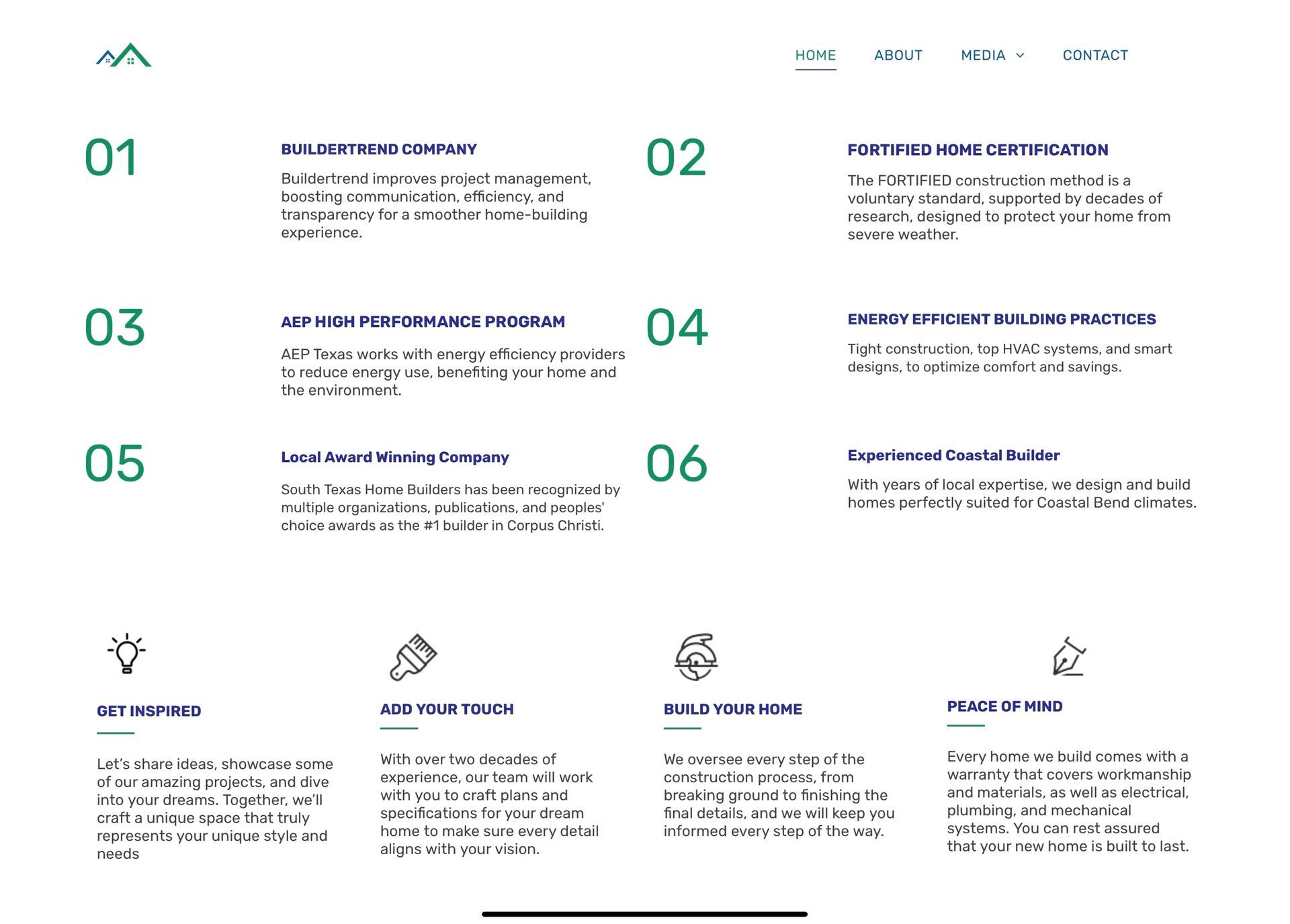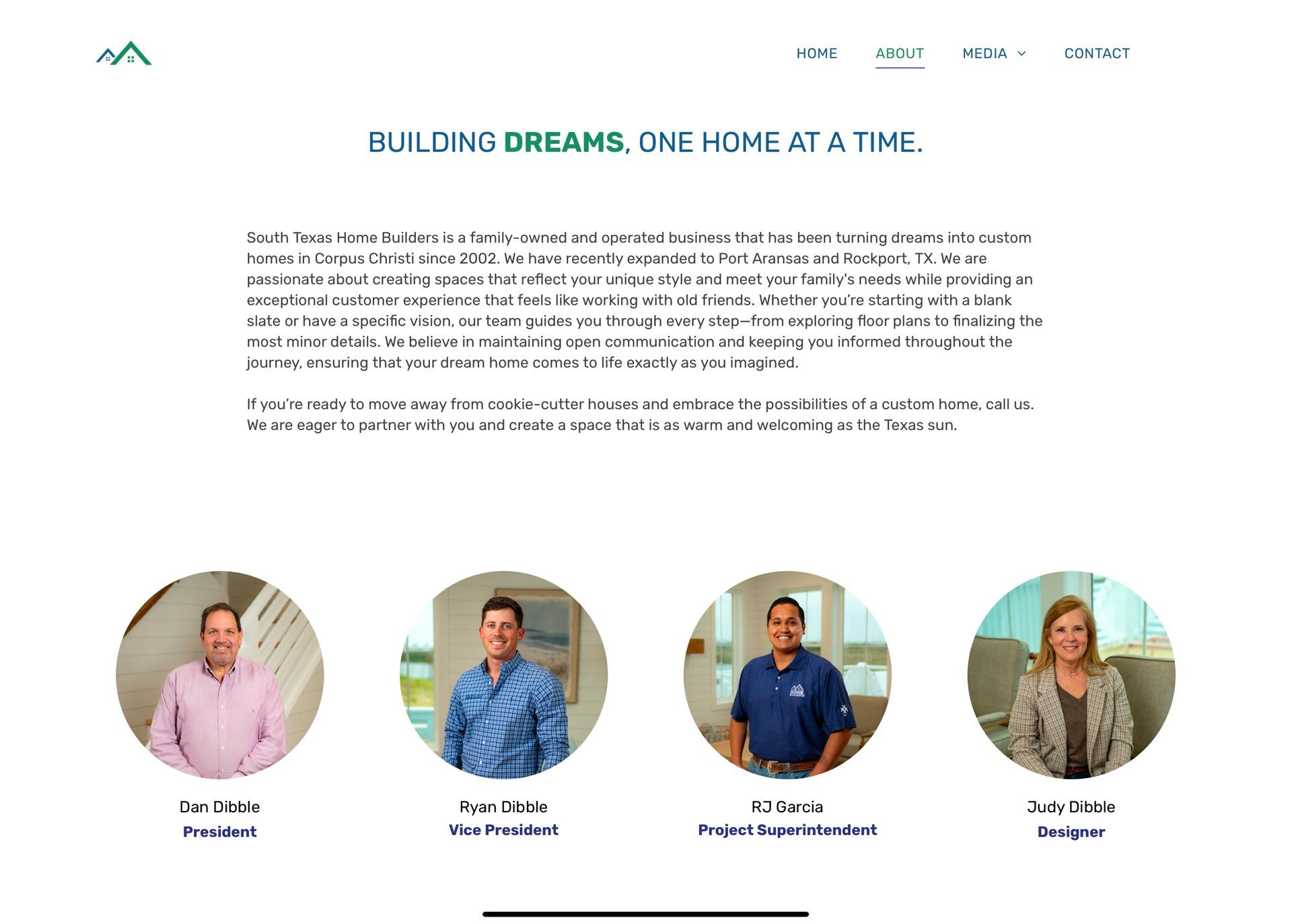 "Hiring a full-time web manager wasn’t practical, and we didn’t want to work with an agency that would treat our company like a number. That's why we chose BUILDER—they understand our vision for South Texas Home Builders and effectively represent that online. Their branding assistance has been a great bonus too. We're very pleased with our website and collaboration with BUILDER."